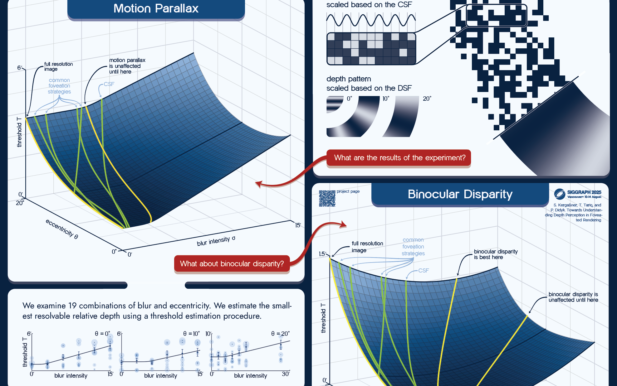 We examine the impact of blur on the depth perceived by motion parallax and evaluate the findings in comparison to our previous findings on the impact of blur on stereoacuity.